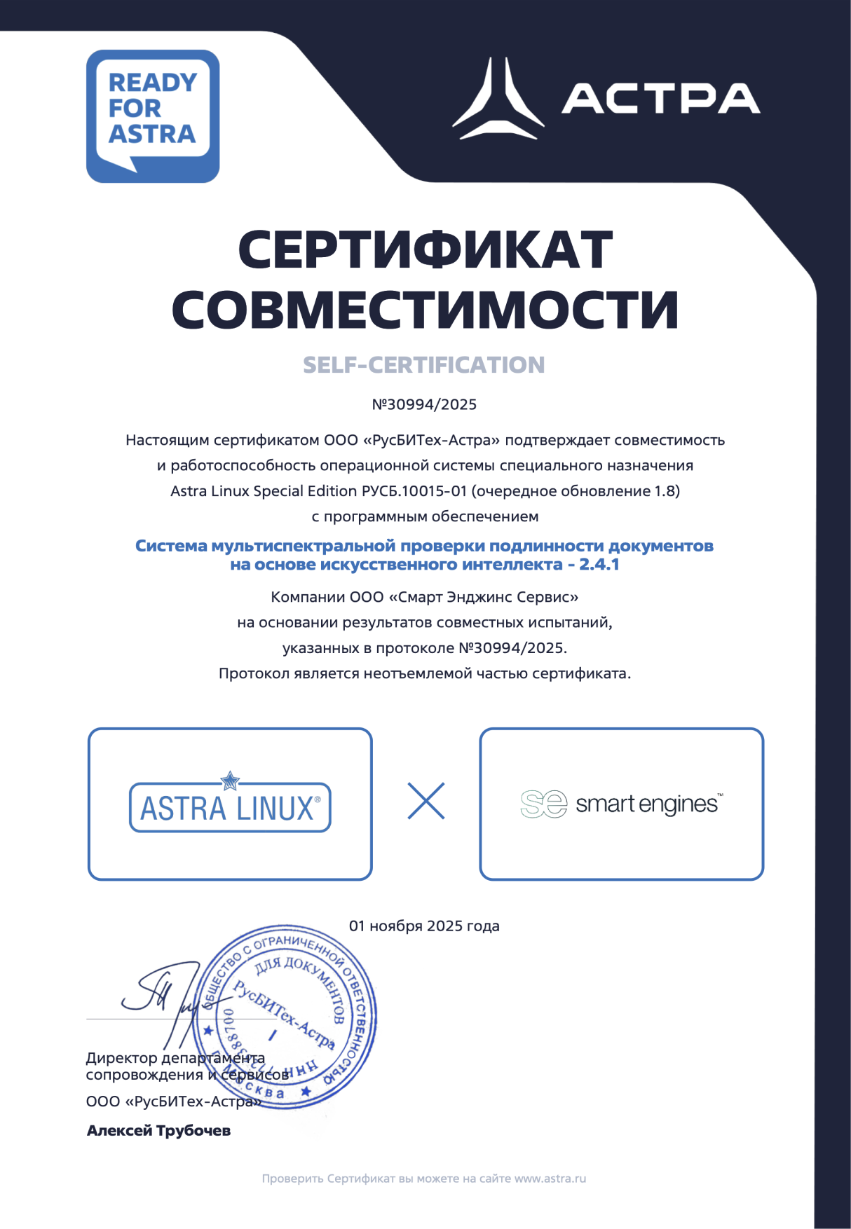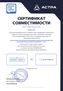 28.10.2025Компания Smart Engines (ООО «Смарт Энджинс Сервис»), специализирующаяся на разработке искусственного интеллекта для распознавания документов, получила сертификаты национального бренда «Сделано в России» от Российского экспортного центра (РЭЦ. Группа ВЭБ) для своих ключевых программных продуктов — Smart ID Engine и Smart Code Engine. Smart Engines была основана в 2016 году российскими…
