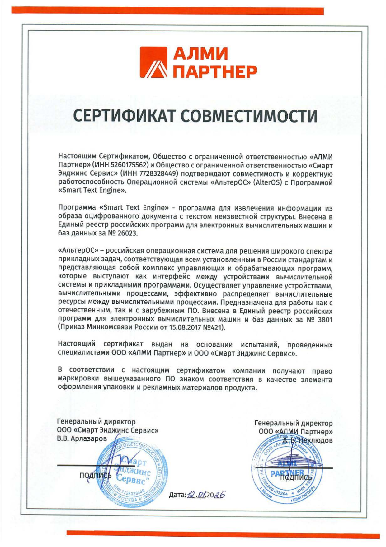 26.01.2026Умный документооборот в ОС «Альт»: подтверждена совместимость с ИИ-технологиями Smart Engines