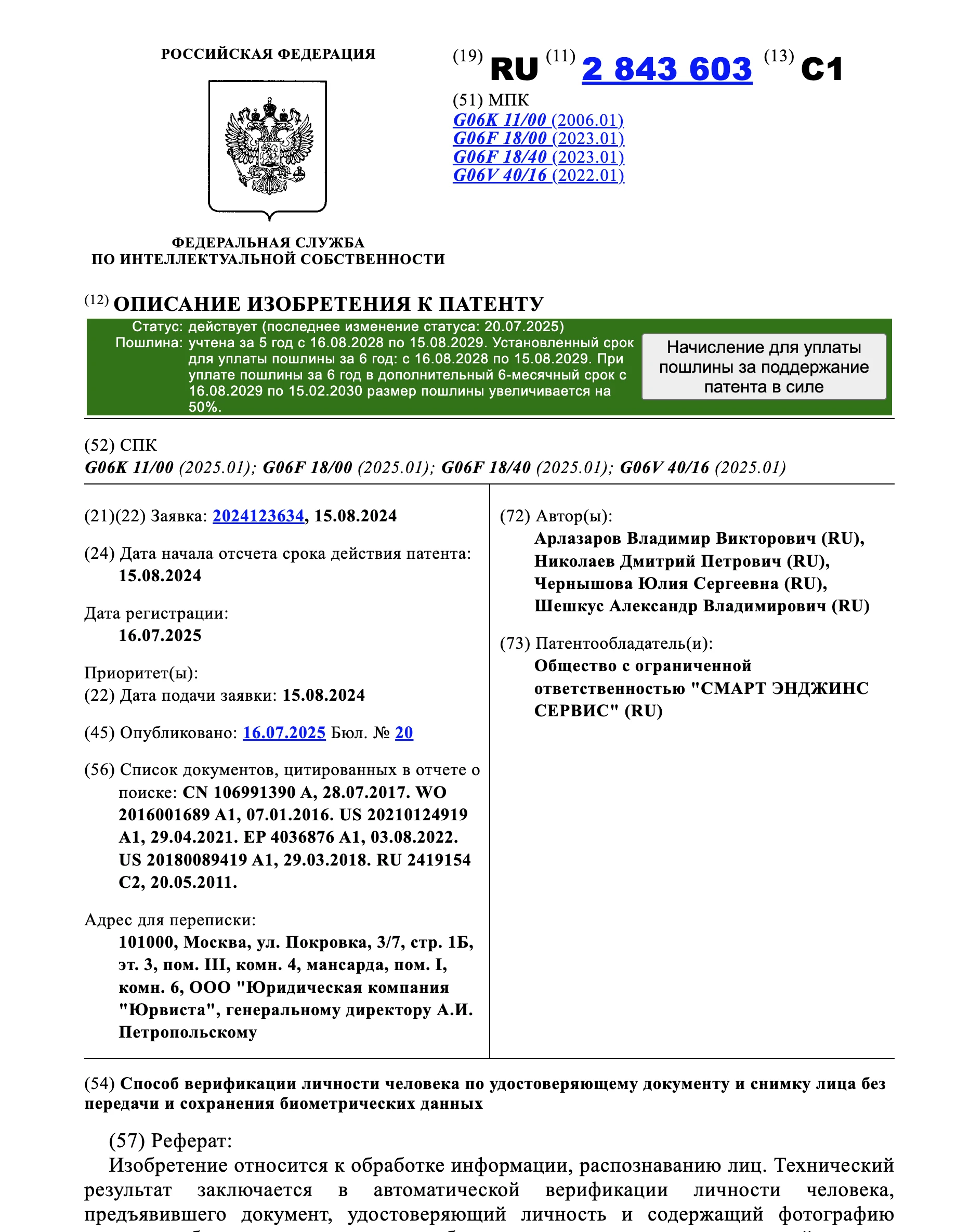 2025, RU 2 843 603 C1