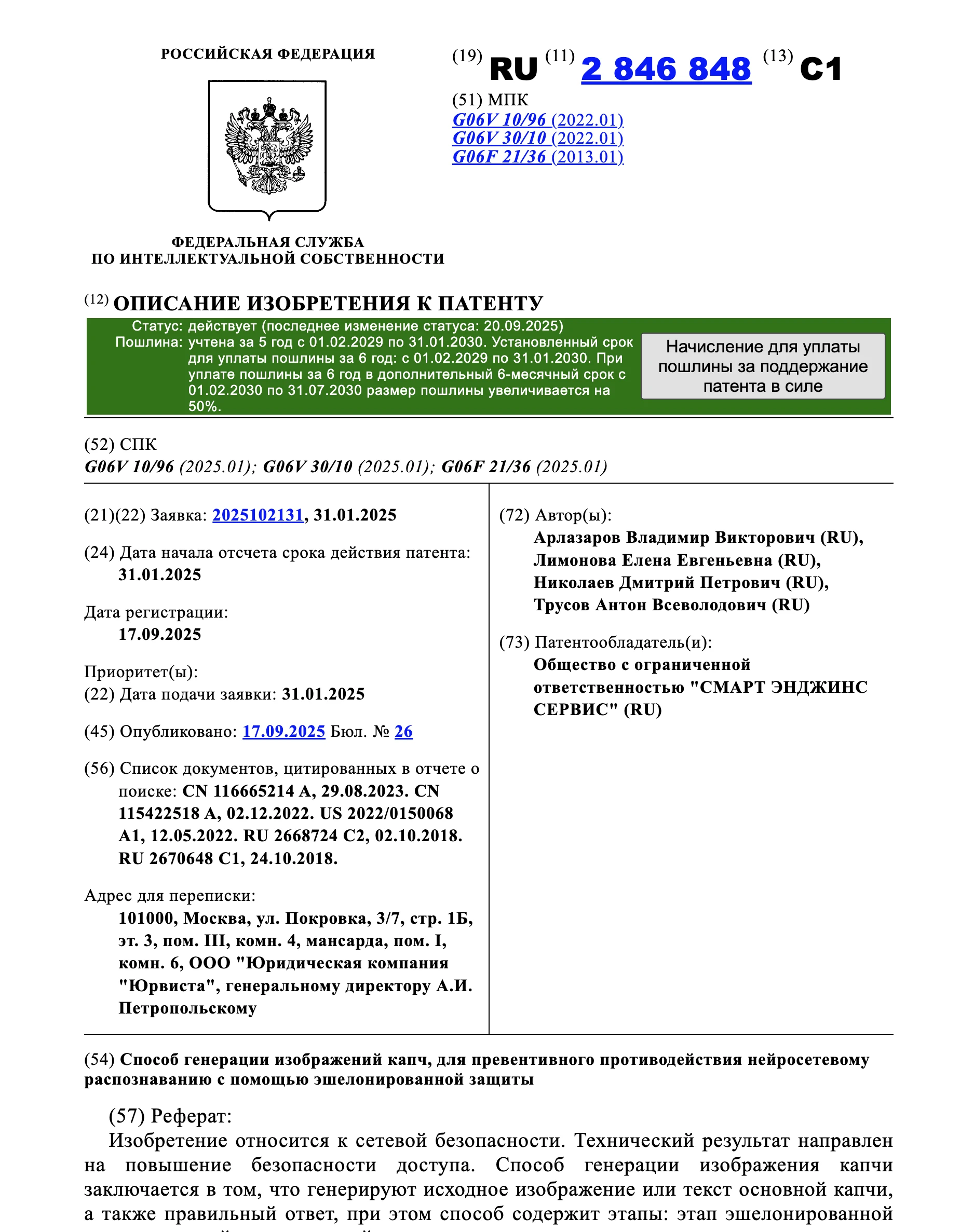 2025, RU 2 846 848 C1