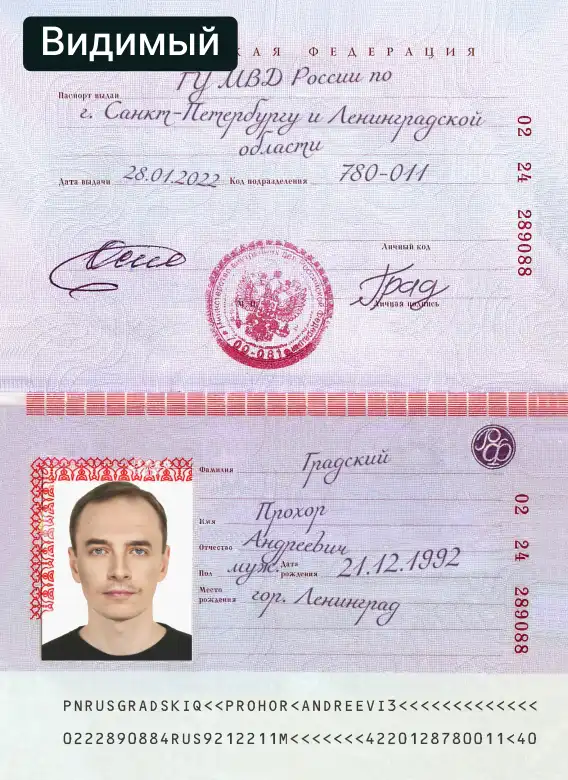 Система Smart Engines распознает как основной разворот паспорта, так и все остальные страницы, включая страницы со штампами о регистрации и ранее выданных паспортах, записи о воинской обязанности, семейном положении, детях и другие. На каждой странице алгоритмы автоматически находят и считывают номер — как печатный, так и перфорированный.